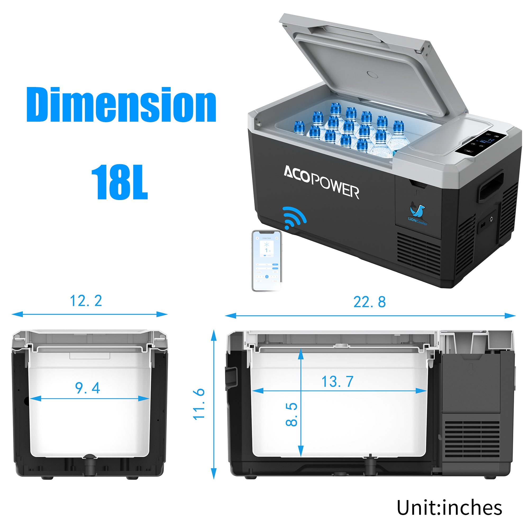 LiONCooler Min Solar Powered Car Fridge Freezer, 19 Quarts