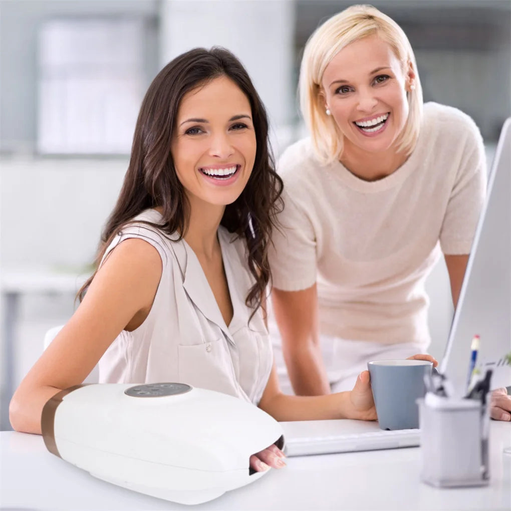 Relieve hand tension and fatigue with this advanced cordless electric massager designed for therapeutic relief. Featuring six adjustable pressure levels, soothing vibration, and gentle heating therapy, this device targets hand strain from repetitive use or arthritis. The rechargeable battery ensures cordless convenience for anytime relief, while the compression technology mimics professional massage techniques. Ideal for those seeking drug-free pain management and improved circulation in the hands and wrists. Compact and portable for home or travel use.