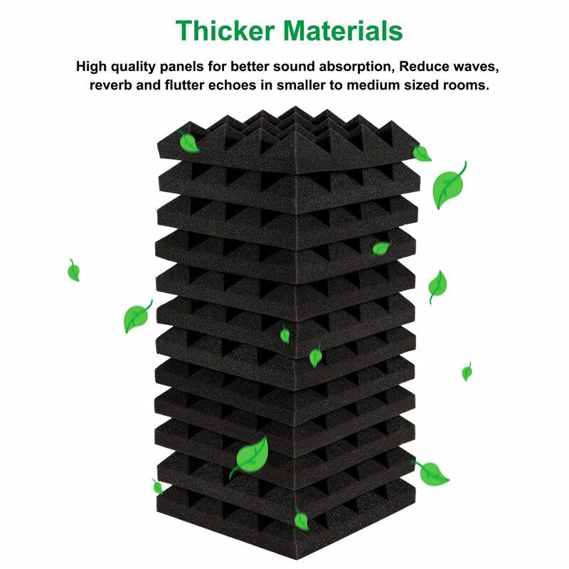 For optimal sound absorption, our product includes 24 pieces of polyurethane material in each set of panels. Measuring 25x25x5cm, these panels are designed to effectively treat sound and create a quieter environment.