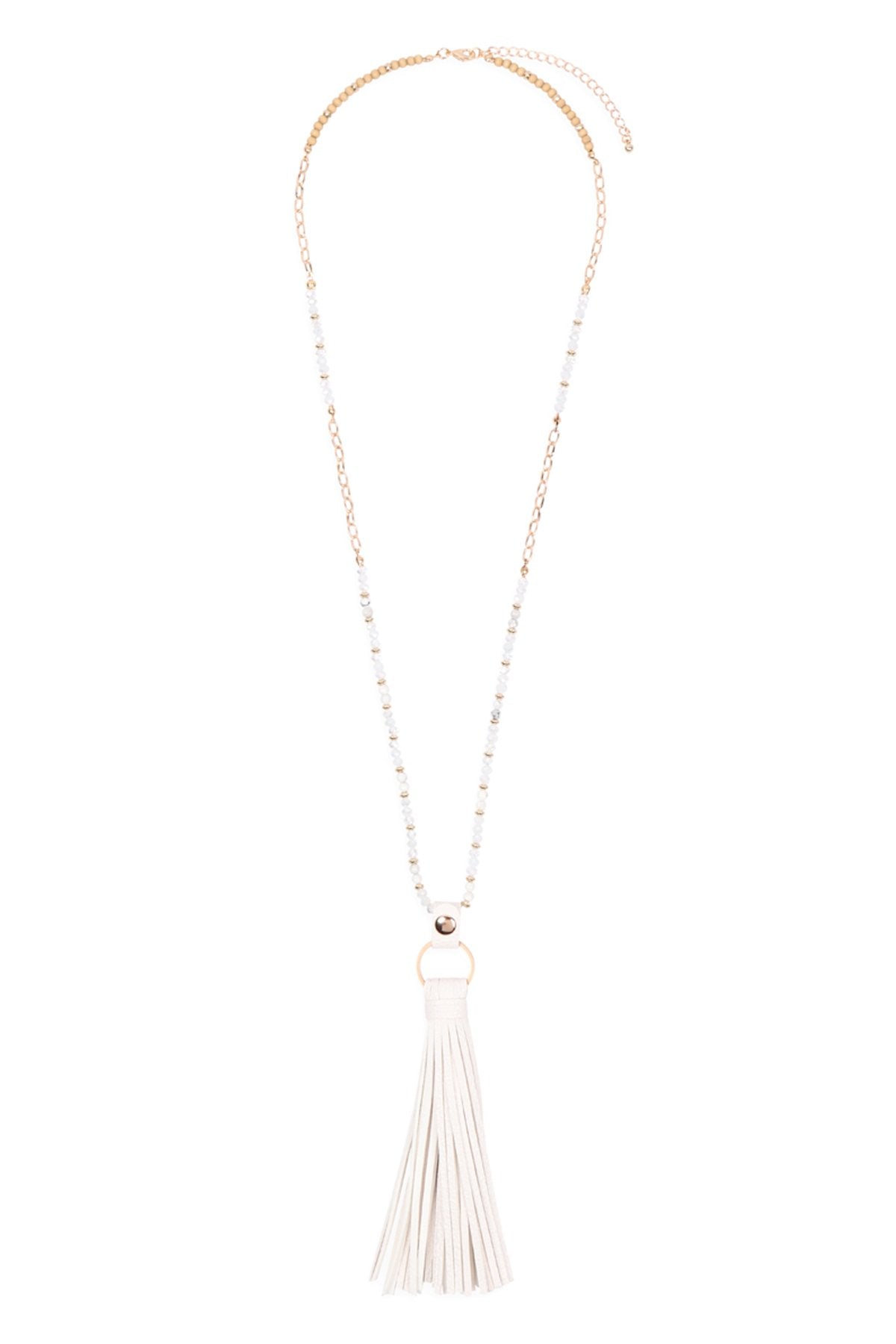 A gorgeous long line necklace adorned with earthy natural stones and genuine suede tassel strands, adding the perfect touch of flair to your everyday outfits. Perfect to wear over deep necklines or simple tops to bring out a pop.