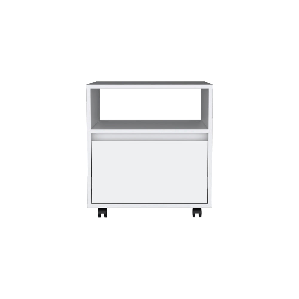 The Munyoch Nightstand features casters, making it easy to move around your room. It also has a drawer (15,5"W X 13,2"D), perfect for keeping your belongings tidy and out of sight. The open cabinet is excellent for storing books, controls, or your favorite decoration (17,7"W X 15,7"D). And the top surface is comprehensive and perfect for your needs. Order your Munyoch Nightstand today!