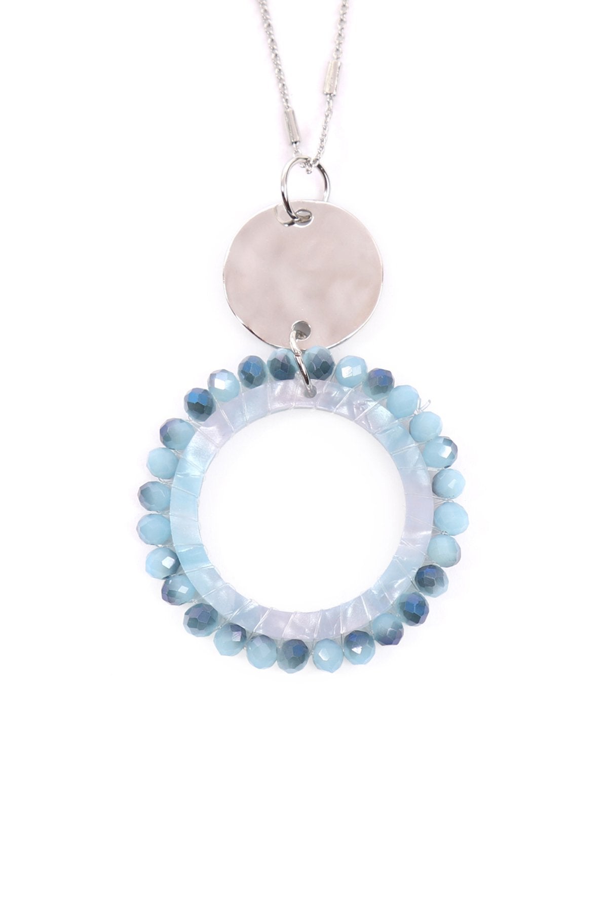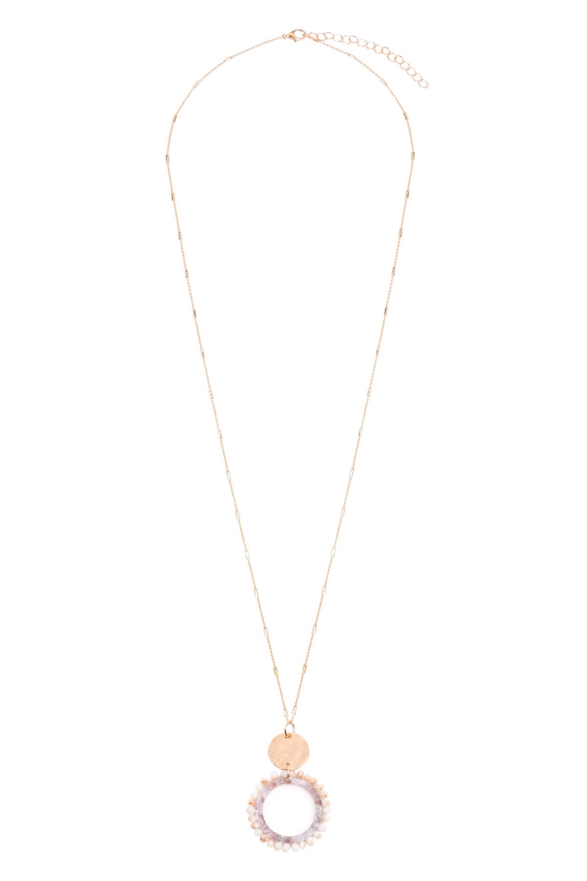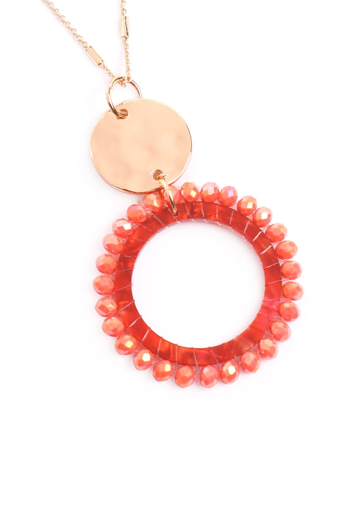 Pretty and with extra flair, these stylish necklaces are sure to add sass to your deep necklines and simple tops. Each is adorned with a highly-polished acetic acid plate, a gold chain, and a glass beads pendant creating a unique piece.