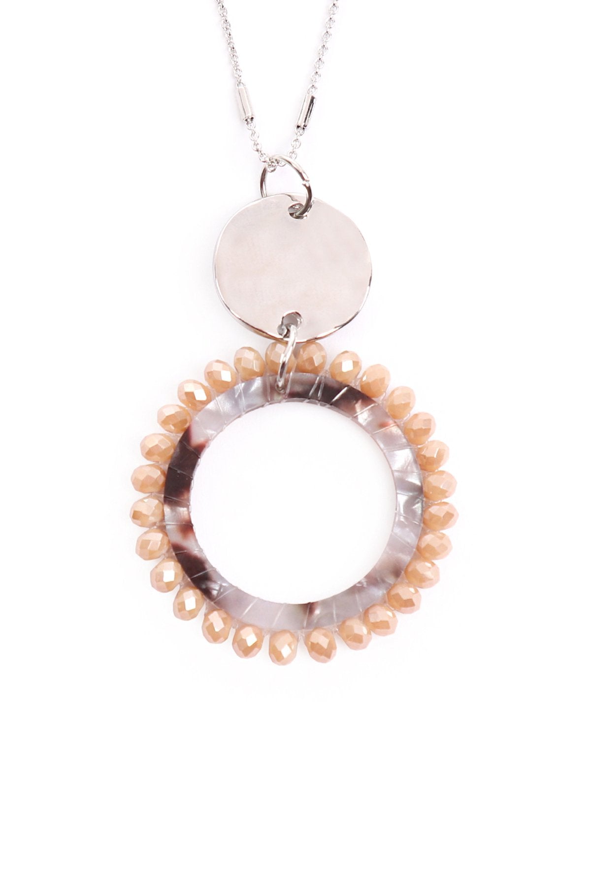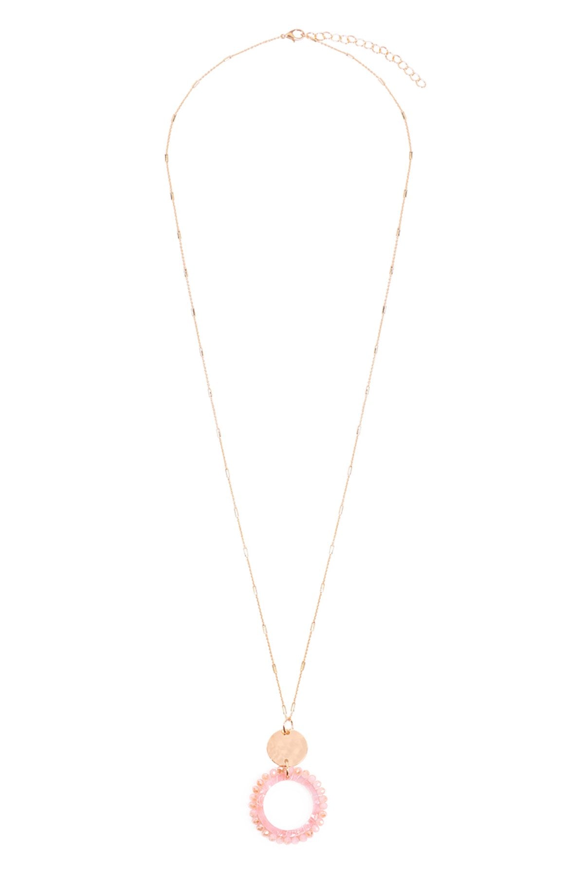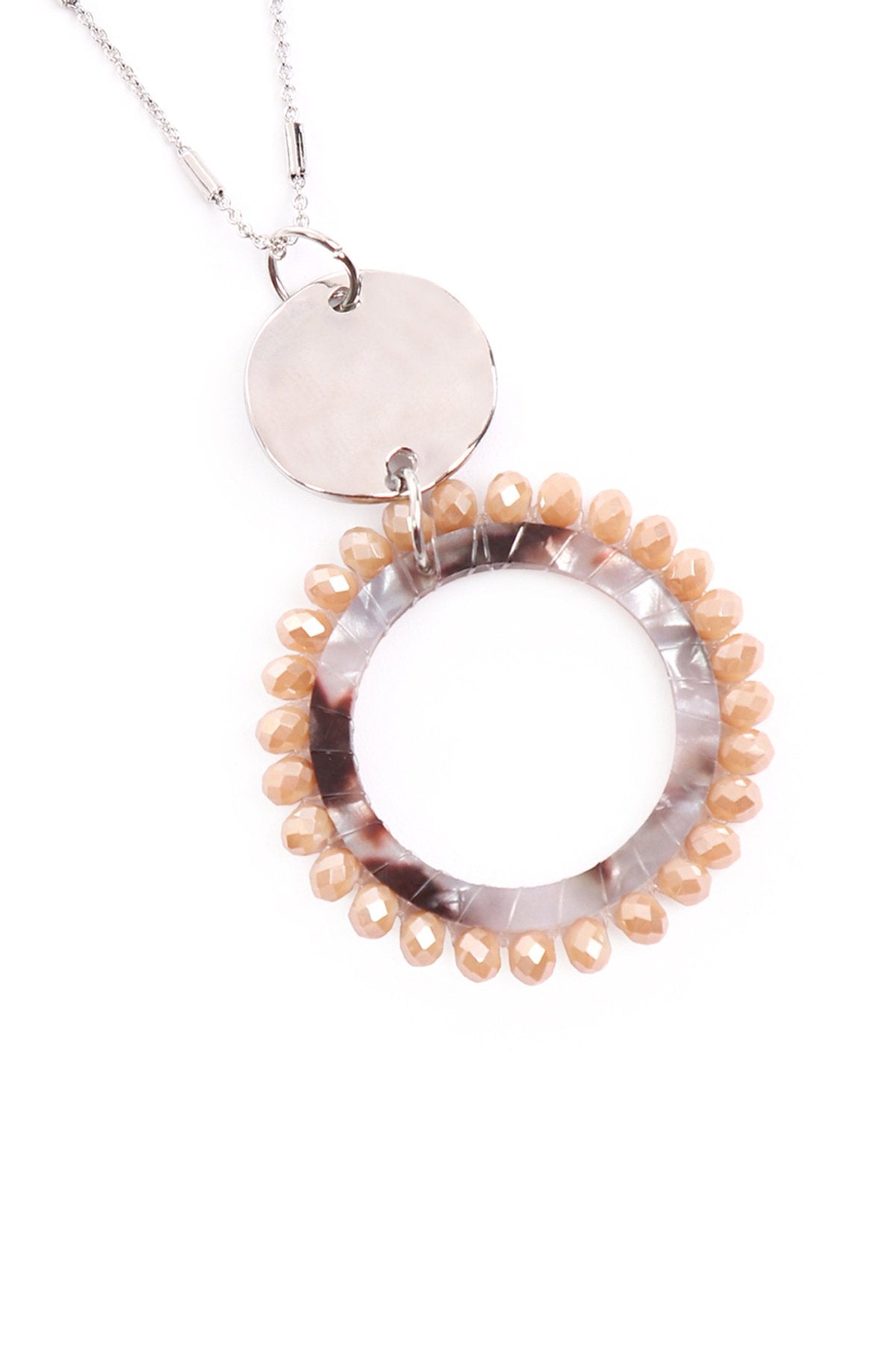 Pretty and with extra flair, these stylish necklaces are sure to add sass to your deep necklines and simple tops. Each is adorned with a highly-polished acetic acid plate, a gold chain, and a glass beads pendant creating a unique piece.