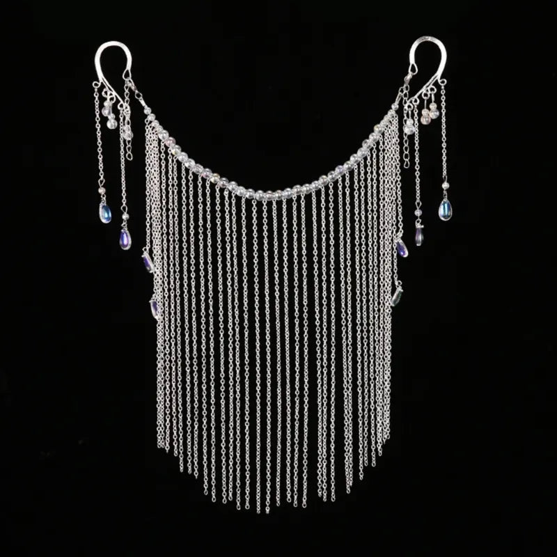 Elevate your masquerade look with our Luxurious Face Jewelry Fairy Face Curtain. Made of high-quality stainless steel, it features a trendy and elegant design, perfect for adding some sparkle and charm to any outfit. This unique hair accessory is perfect for women and will surely make you stand out at any party or cosplay event.