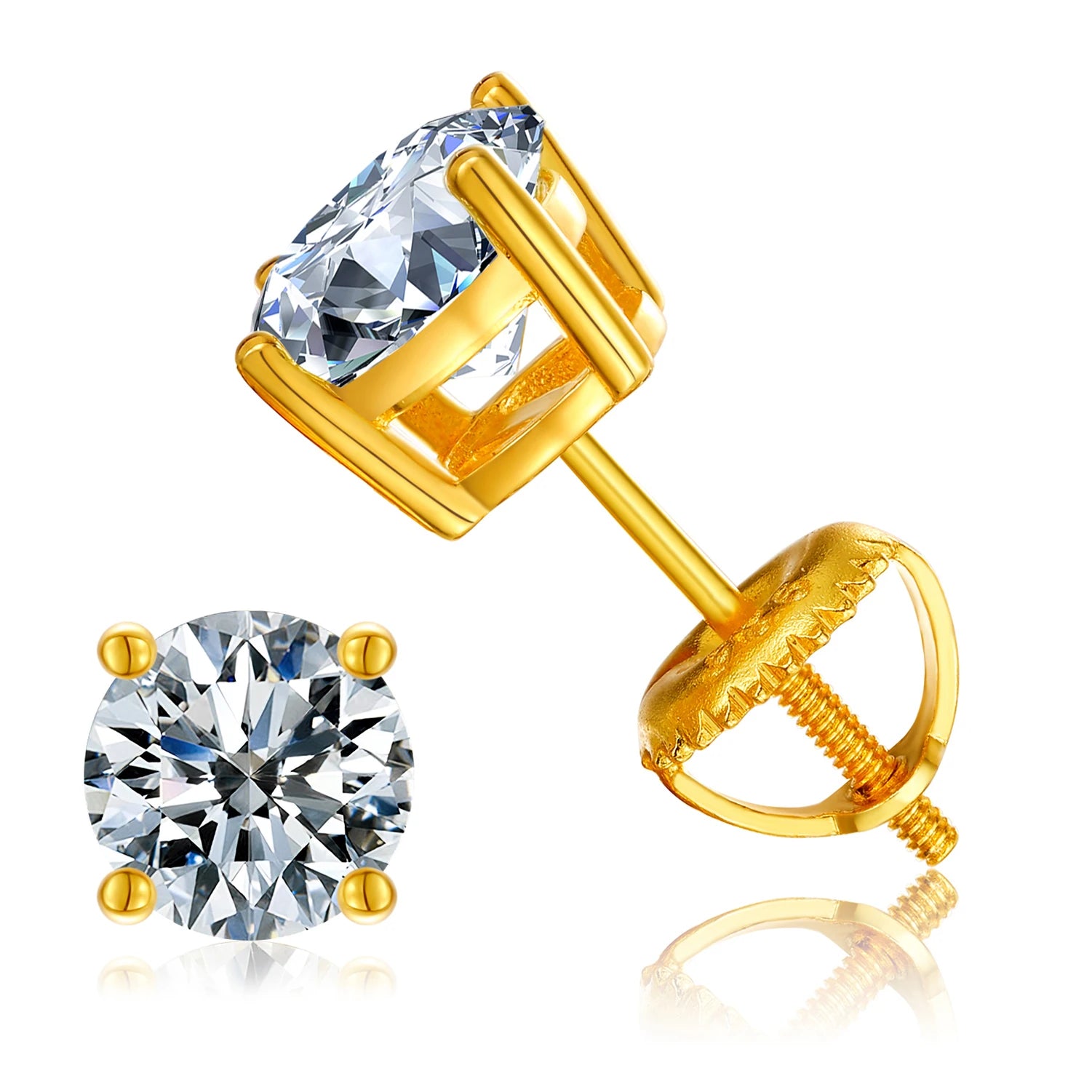 Classic Screw Back 925 Sterling Silver 6.5mm 1ct VVS Moissanite Diamond Stud Earrings